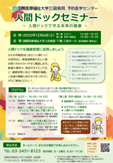 人間ドックを健康管理に活用しましょう がんの早期発見に役立つ人間ドックの活用法と、検査結果表の正しい読み取り方をわかりやすく解説します。数値の意味や、受診のタイミングなど、健康管理に役立つ情報が満載。本セミナーにご参加いただいたご本人、ご家族の方に、人間ドック受診時の特典をご用意しております。ご自身の健康と向き合うきっかけに、ぜひご参加ください! |